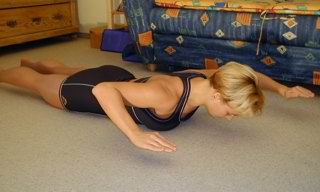 Hals- und Lendenwirbelsäule. Der Blick bleibt nach unten gerichtet. Der